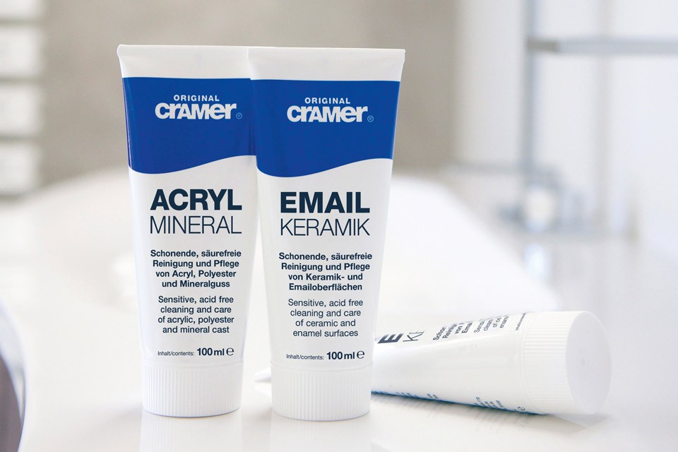 Cramer – das ist die zuverlässige Lösung für die schonende Reinigung und Pflege von hochwertigen Badausstattungen. Unser breites Sortiment bietet nicht nur erstklassige Reinigungs- und Pflegeprodukte, sondern auch hochwertige Reparaturkomponenten und Fugensets. Egal, ob es um die Reparatur kleiner Beschädigungen geht oder um die professionelle Gestaltung von perfekten Dichtungsfugen – mit Cramer setzen Sie auf Qualität bis ins kleinste Detail. Vertrauen Sie auf unsere Produkte und bewahren Sie die Schönheit Ihres Badezimmers.